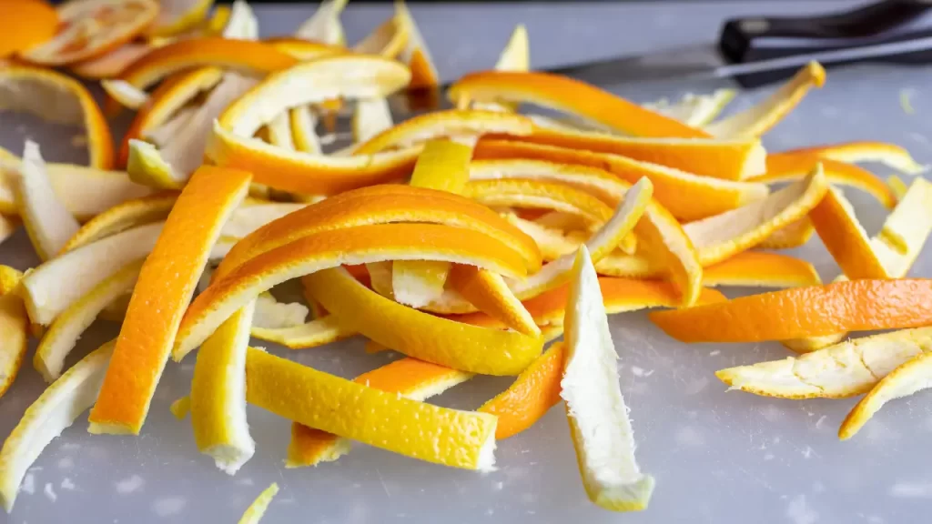 - Combine as cascas numa proporção de 60% limão e 40% laranja para equilibrar acidez e doçura