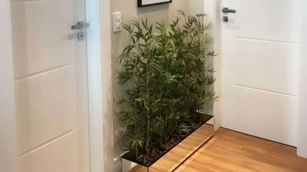 O bambu-da-sorte quando colocado na entrada é uma das plantas mais poderosas para atrair abundância financeira. Seus caules verticais simbolizam crescimento constante e suas folhas verdes representam a energia da prosperidade.